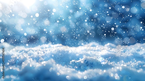 © DeepView, Naklejka premium Snow background with bokeh lights and snowdrifts