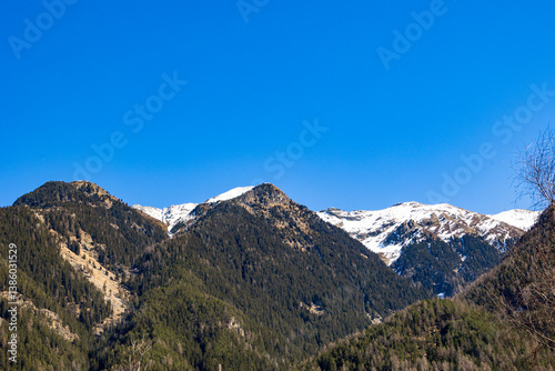 Obraz premium Snow-capped alpine mountains under clear blue sky, Ötztal, Austria, 20 March 2025..
