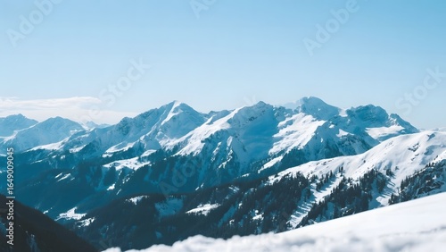 © Big, Fototapeta premium Snow-Capped Mountain Peaks Under a Clear Blue Sky
