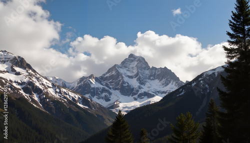 © Tatiana, Fototapeta premium Snow-capped mountain range against a clear blue sky