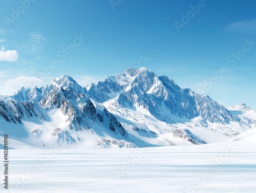 Fototapeta premium Snow-capped mountain range under bright winter sky, white landscape