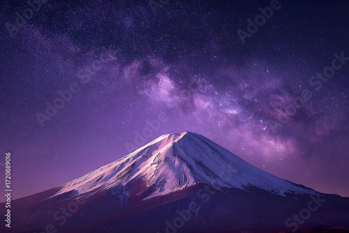 © Wang, Fototapeta premium Snow-capped mountain under starry night sky.