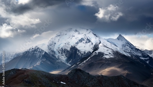 Fototapeta premium snow capped mountain viewed on cloudy day