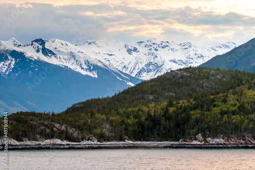 © Mary Swift, Obraz premium Snow-capped mountains along the Chilkoot Inlet in Alaska