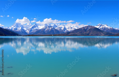 Naklejka premium Snow - capped Mountains and Lake Natural Scenery
