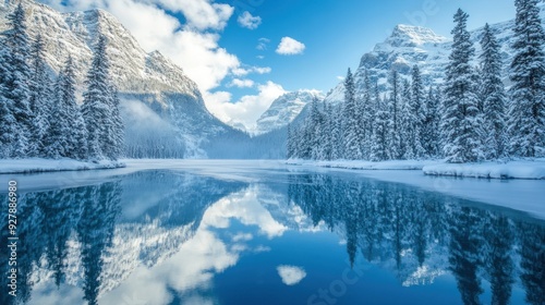 © Nas, Fototapeta premium Snow-capped Mountains Reflected in a Frozen Lake