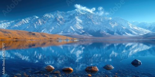 © raja, Obraz premium Snow-capped mountains reflected in a still mountain lake