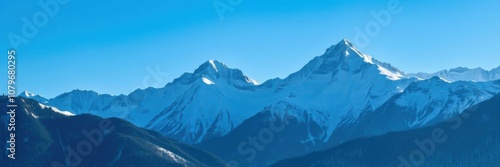 Fototapeta premium Snow-capped mountains towering under a clear blue sky, white, cold
