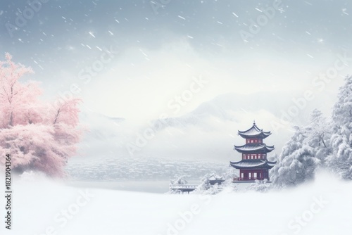 © Rawpixel.com, Fototapeta premium Snow chinese Style snow architecture building.