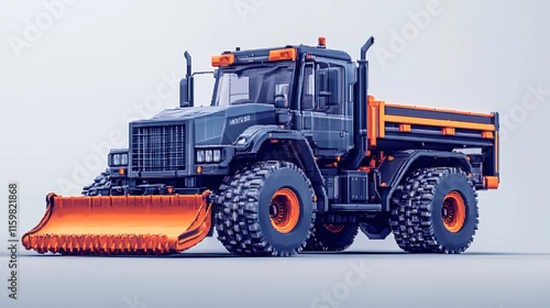© Nikita44, Fototapeta premium Snow-clearing vehicle pushing snow off the streets, ensuring clear routes for drivers, depicted in a clean and minimal illustration style