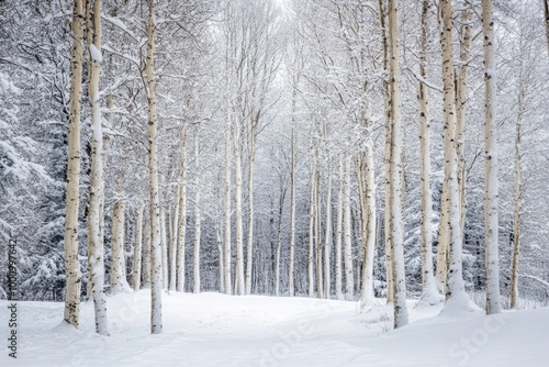 Fototapeta premium Snow-Covered Birch Trees in a Winter Forest