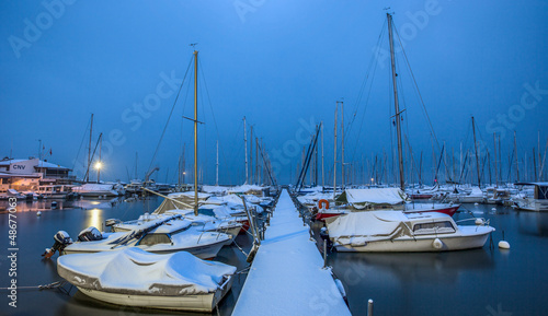 © akulamatiau, Fototapeta premium Snow Covered Boats in a Marina