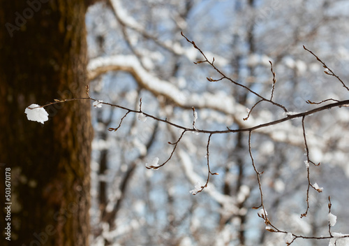 Obraz premium Snow covered branches in winter. Winter is a beautiful time of year.