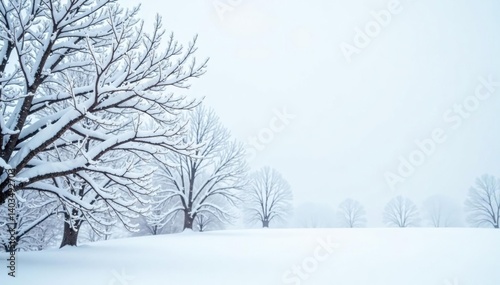 Obraz premium Snow-covered branches, stark white, minimalist winter scene, minimal, stark,...
