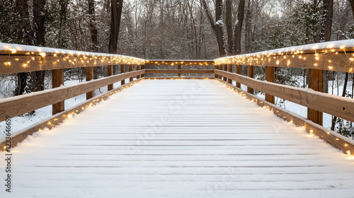 © siraphol, Obraz premium snow covered bridge adorned with twinkling lights creates magical winter scene