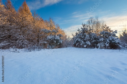 © milosz_g, Fototapeta premium Snow covered countryside with trees
