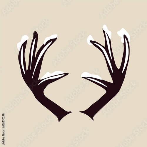 Obraz premium Snow covered deer horns on beige background
