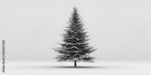 © Rizwan, Obraz premium Snow-Covered Evergreen Tree Against Light-Colored Background with Shadow