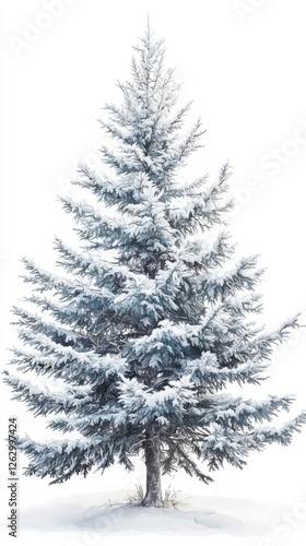 © Ariestia, Fototapeta premium Snow Covered Evergreen Tree Winter Landscape