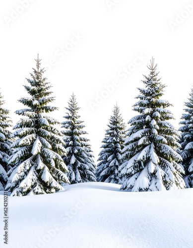 Naklejka premium Snow-covered evergreen trees in a winter scene against a white background