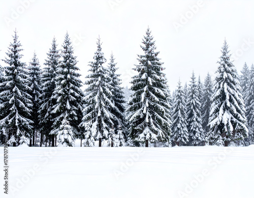 © Nanas, Naklejka premium Snow-Covered Forest A Serene Winter Landscape in a Snowy Environment of Evergreens
