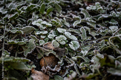 Fototapeta premium snow covered grass frost grass in ice