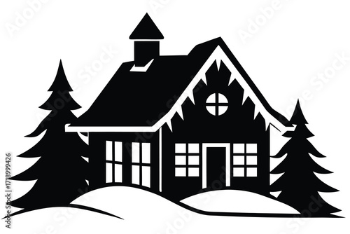 © Suro, Fototapeta premium snow covered house silhouette vector art illustrat
