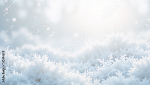 Fototapeta premium Snow-covered landscape with delicate snowflakes and soft sunlight in a winter...