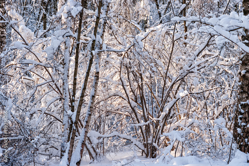 © Sander, Fototapeta premium Snow covered leafless trees and shrubs in winter