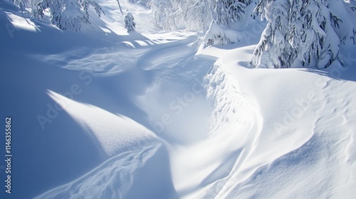 © Solo, Fototapeta premium Snow-covered mountain landscape showcases undulating hills under a cloudy sky in winter