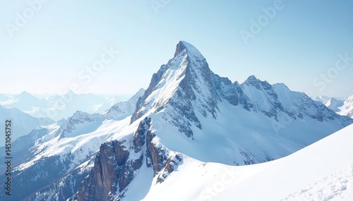 Obraz premium Snow-covered mountain peak, pristine white backdrop, glacial, ice