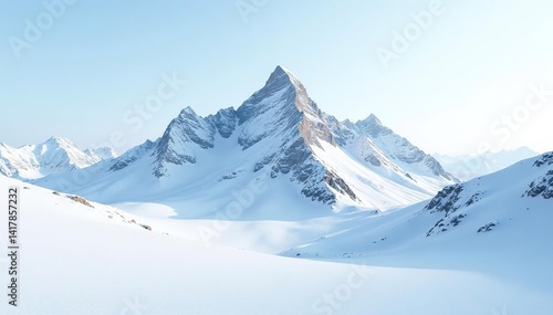 Fototapeta premium Snow-covered mountain peak, stark white landscape, alpine, high key