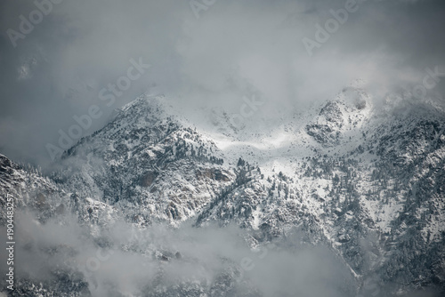 © Picsverge, Obraz premium Snow covered mountains and clouds.