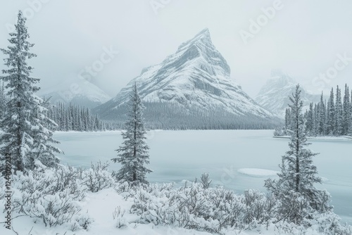 © Scroopt, Fototapeta premium Snow covered mountains and frozen lake winter scene