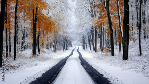 © Yiss Design, Naklejka premium Snow-Covered Path in the Forest