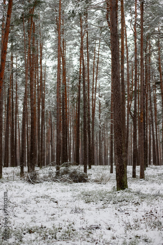 © Alise, Fototapeta premium Snow-Covered Pathway Through a Pine Forest