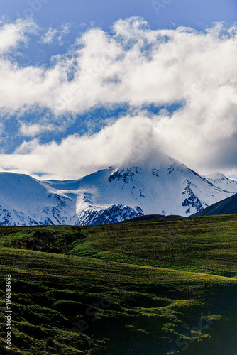 Fototapeta premium Snow covered peaks in mountain landscape