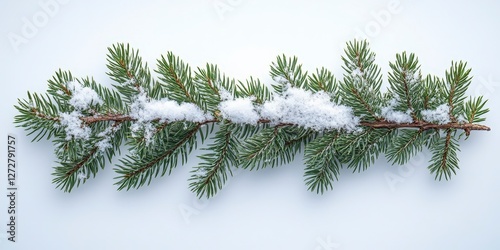 Obraz premium Snow-Covered Pine Branches on Light Background Close-Up View