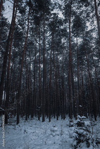 © Mateusz, Fototapeta premium Snow covered pine forest in cold winter light