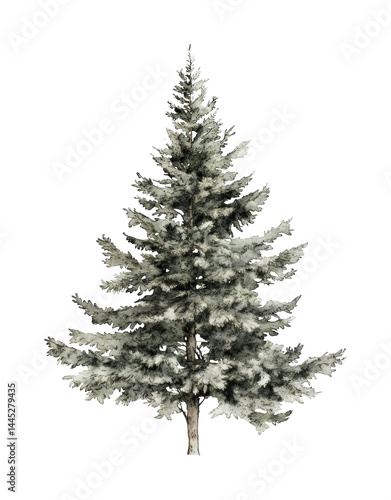 © Mr. Stocker, Fototapeta premium Snow-covered pine tree isolated against dark background