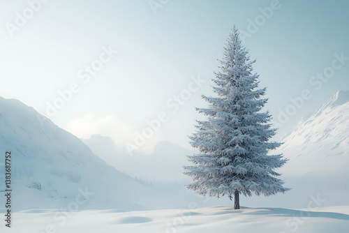 Naklejka premium Snow-covered pine trees in a winter mountain landscape