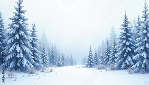 Naklejka premium Snow-covered pine trees in winter landscape.
