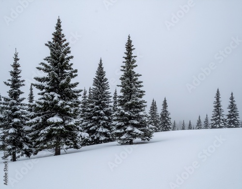 Naklejka premium Snow-Covered Pine Trees- Majestic evergreen pine trees blanketed in heavy snow