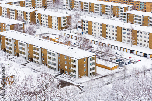 © Mikael, Obraz premium Snow covered residential area in a Swedish town
