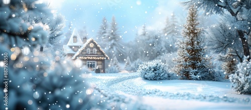 Naklejka premium Snow covered scene with a white Christmas background and copy space image