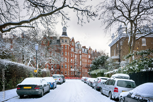 © fazon, Fototapeta premium Snow covered street in Kensington, London.