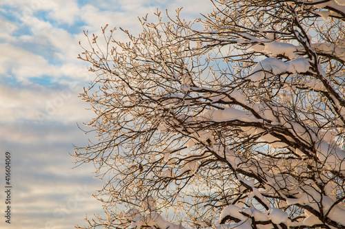 © Ksenia, Obraz premium Snow-covered tree branches. Winter forest.