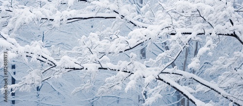 Obraz premium Snow covered tree branches with a close up view and ample copy space image