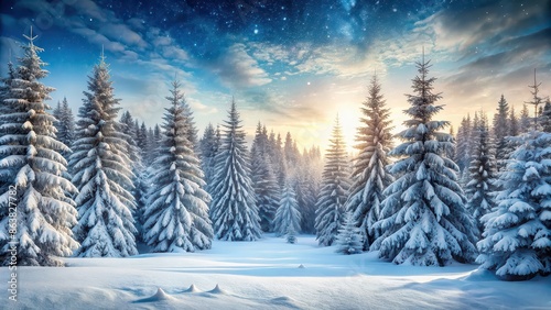 Fototapeta premium Snow-covered trees in a winter landscape, snow, trees, winter, cold, snowy,...