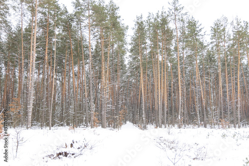 © Sergey, Fototapeta premium Snow-covered trees in the forest.
